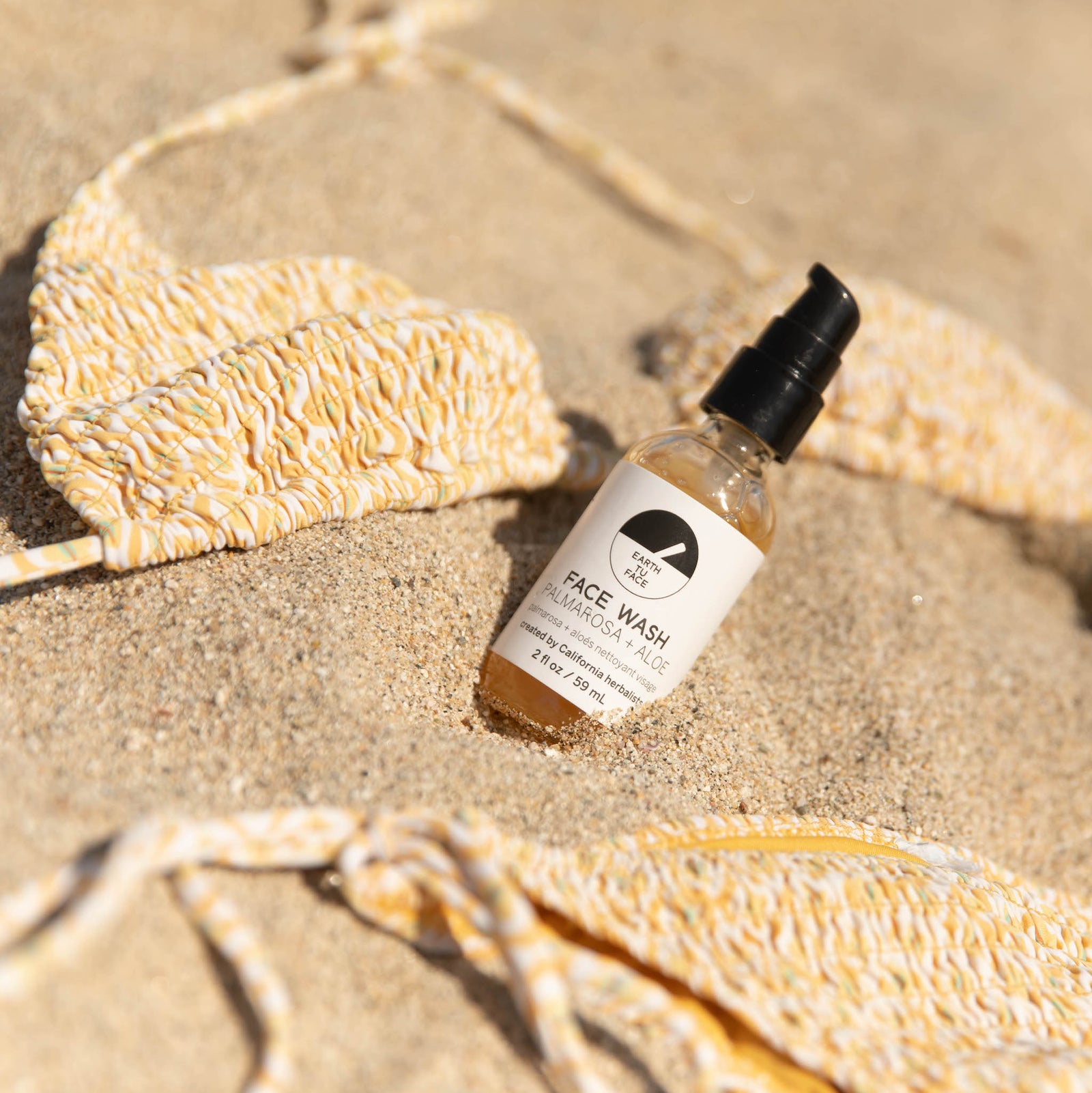 I love the Palmarosa + Aloe Face Wash. It feels so refreshing and calming while washing my face. While washing it also makes me feel like I am cleanly and gently wiping away the dirt from the day. Instead of harmfully or intensely like I have experienced with other products. I can never go back now! I even take the travel size with me now whenever I go anywhere. — Ellie, AZ
